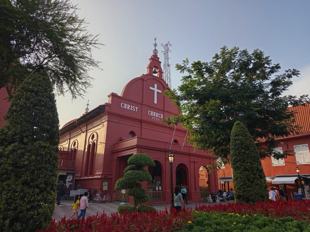 Tepat di sebelah Stadthuys berdiri Christ Church Melaka, gereja Protestan tertua di Malaysia yang masih aktif digunakan hingga kini. Dibangun pada tahun 1753 untuk memperingati seabad pendudukan Belanda, gereja ini memiliki arsitektur khas Belanda dengan dinding merah bata, salib putih besar, dan bangku kayu yang diukir tangan. Meskipun saya tidak masuk ke dalam, berdiri di depannya saja sudah cukup membuat saya terkesima. Gereja ini bukan hanya tempat ibadah, tetapi juga simbol kemenangan dan spiritualitas yang bertahan melintasi zaman.